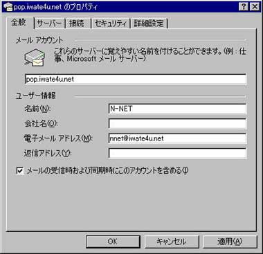 全て入力後[完了]を押し 設定完了です 設定完了後 設定を確認してみましょう 設定を確認するには[プロパティ]をクリック 以下のようなっていますか? メールアドレスが の場合 メールアカウント名は nnet になります